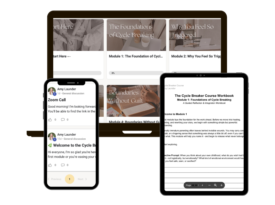 A therapist-created membership for adults raised by emotionally immature or narcissistic parents - especially those now parenting themselves.